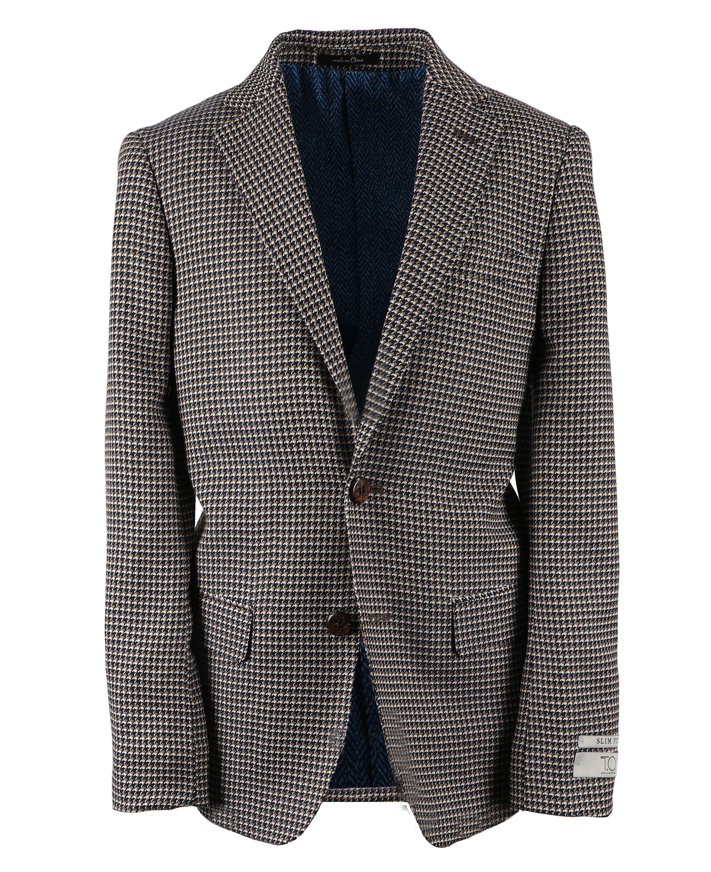 T.O. Boy's Patched Pocket Fashion Blazer - Brown Houndstooth