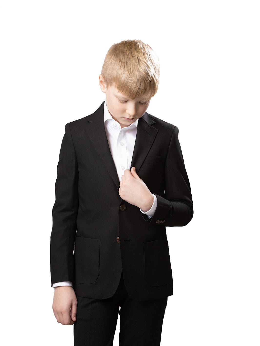 Boy's TR Patch Pocket Suit Jacket - Black Pique