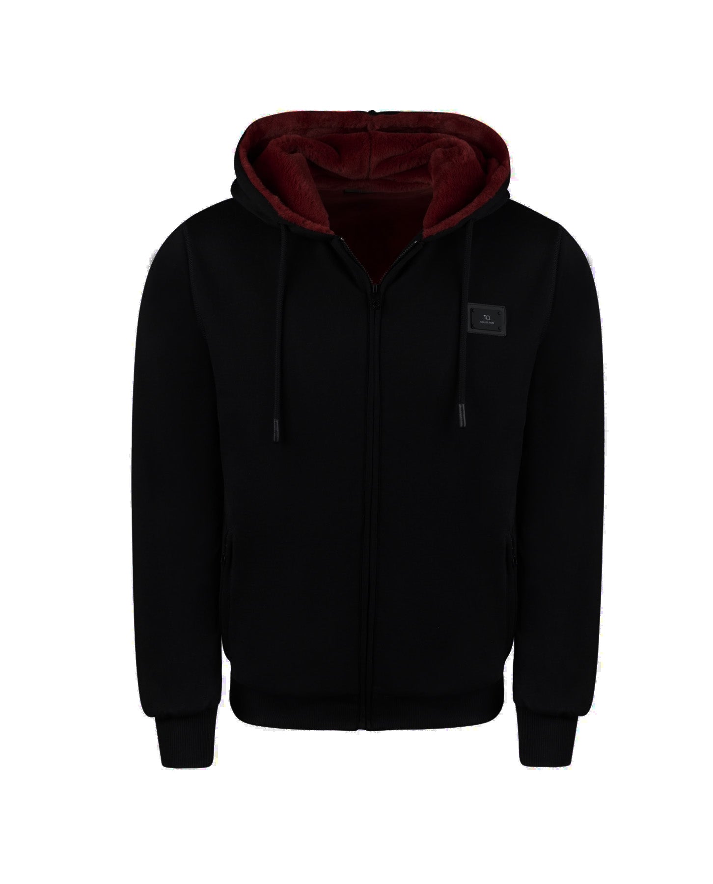 T.O. Collection Kid's Fully Lined Black X Style Hoodie with thumb hole - Burgundy Fur