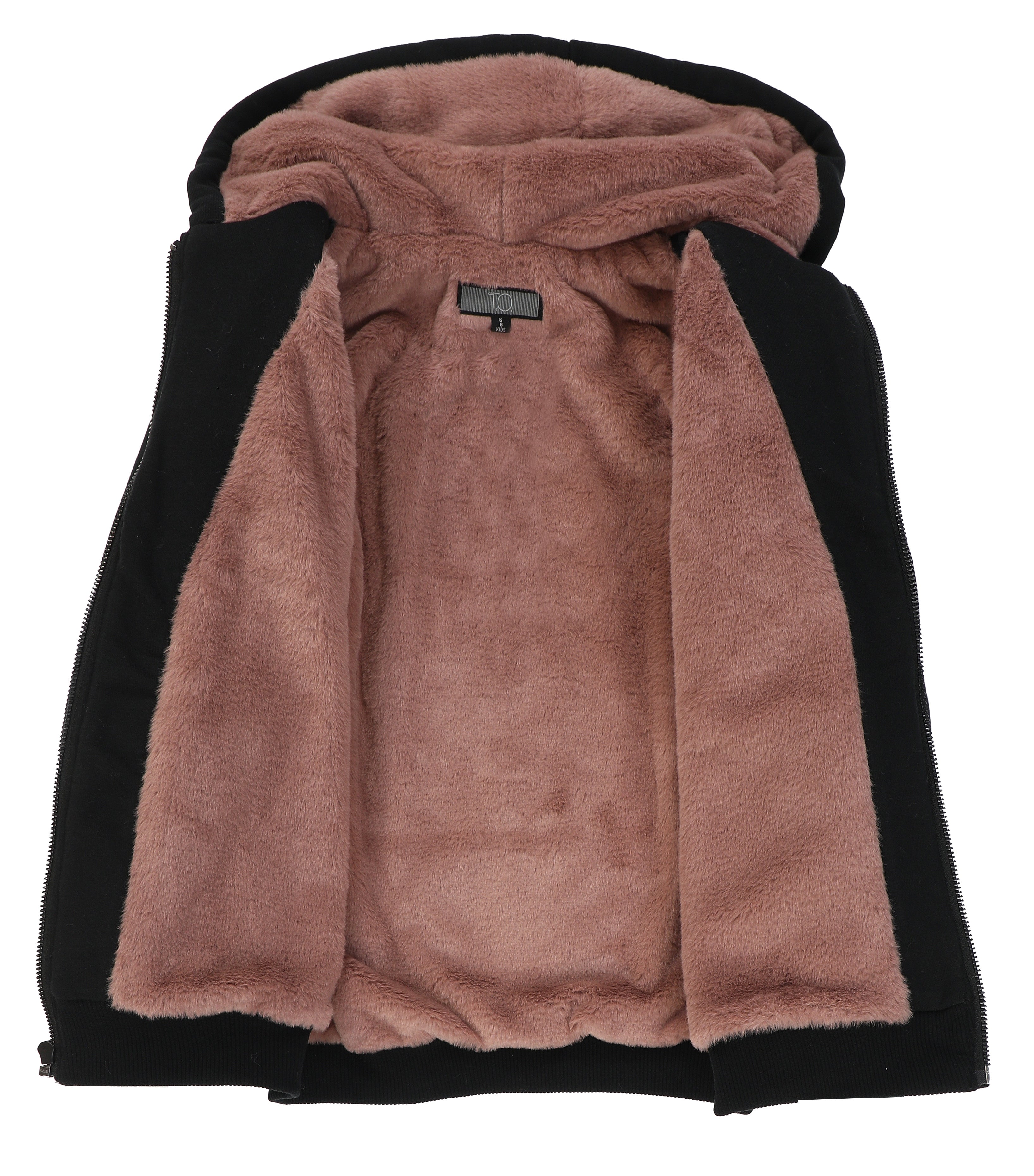 T.O. Collection Adult's Fully Lined Black X Style Hoodie with thumb hole -Mauve Fur