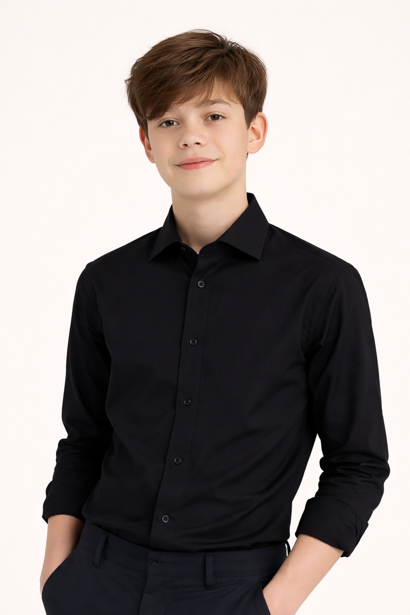 T.O. Collection Boy's Green Label Solid Black Non Iron Shirt