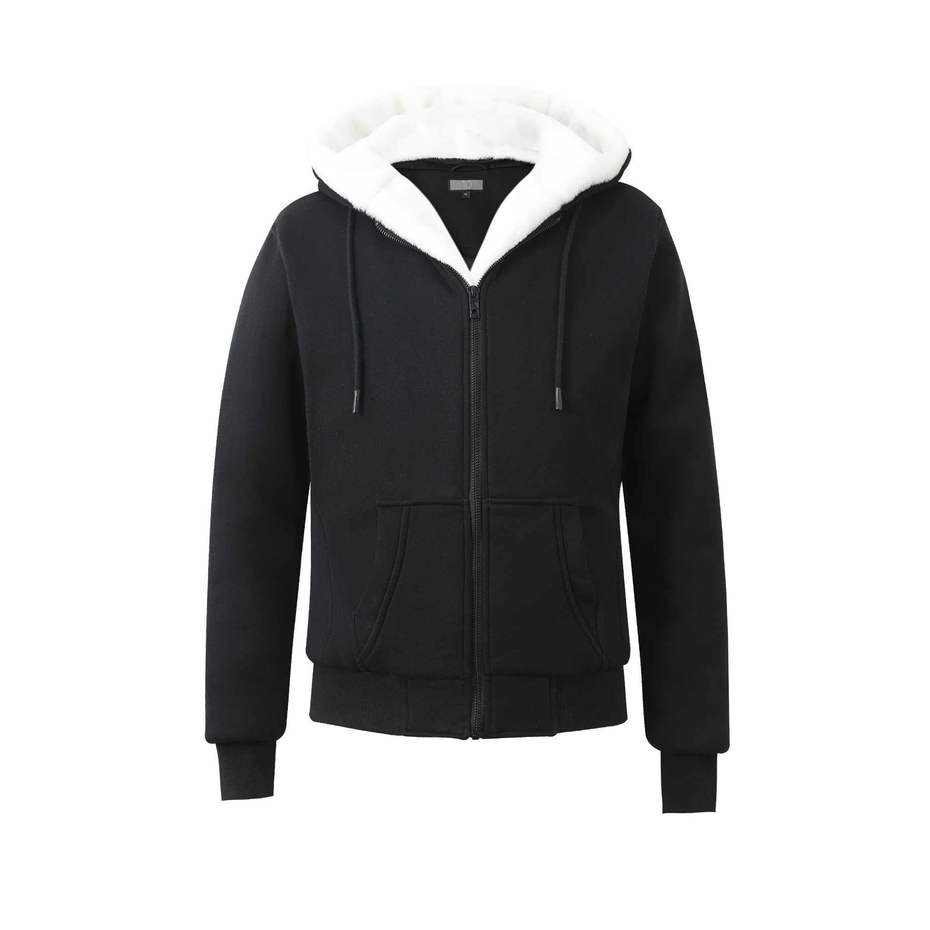 Men's Black Hoodie with Removable Fur- White