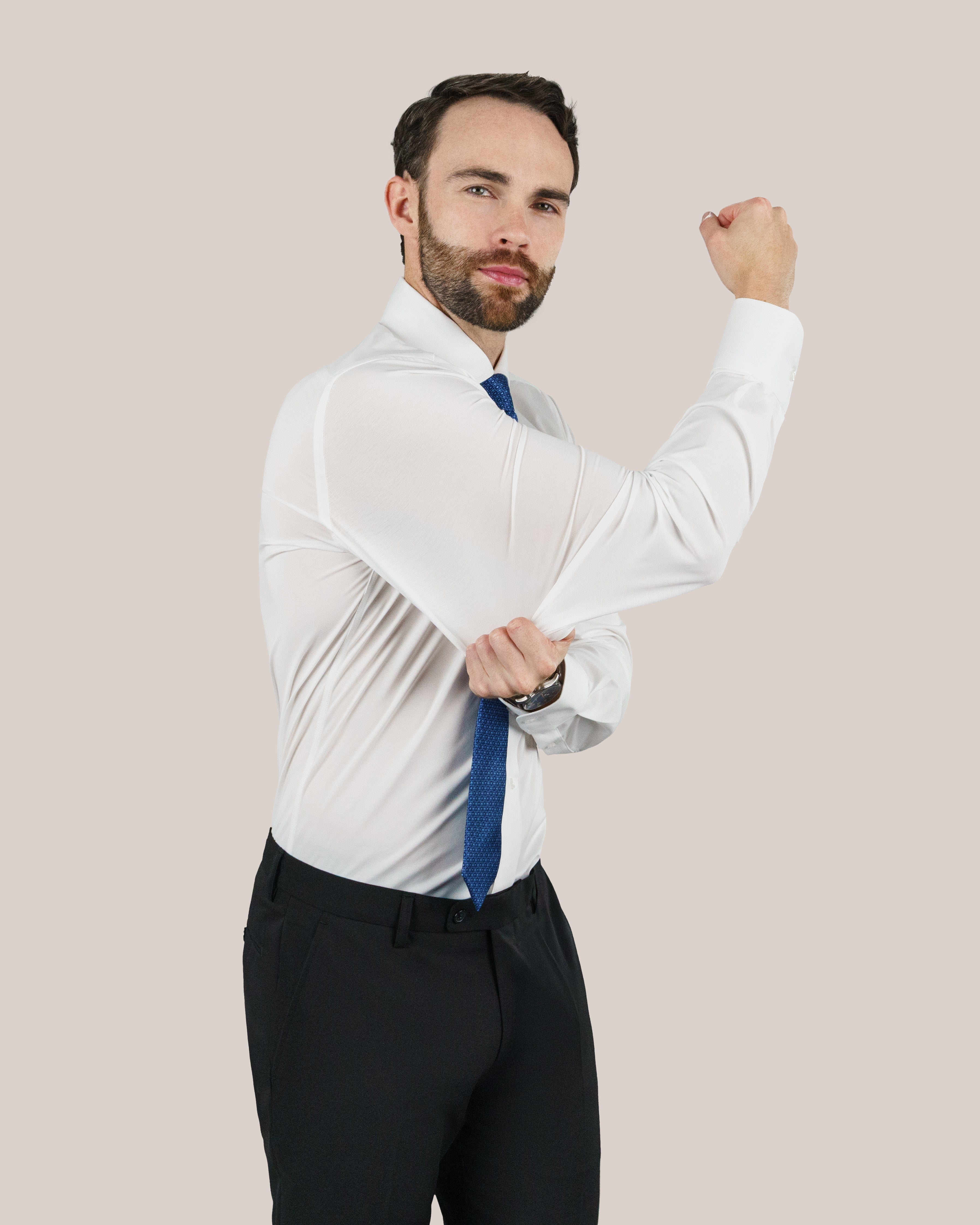 Tailored Stretch: Experience the perfect balance of style and flexibility with our tailored stretch design. This shirt contours to your body for a sleek, modern fit without sacrificing freedom of movement.
