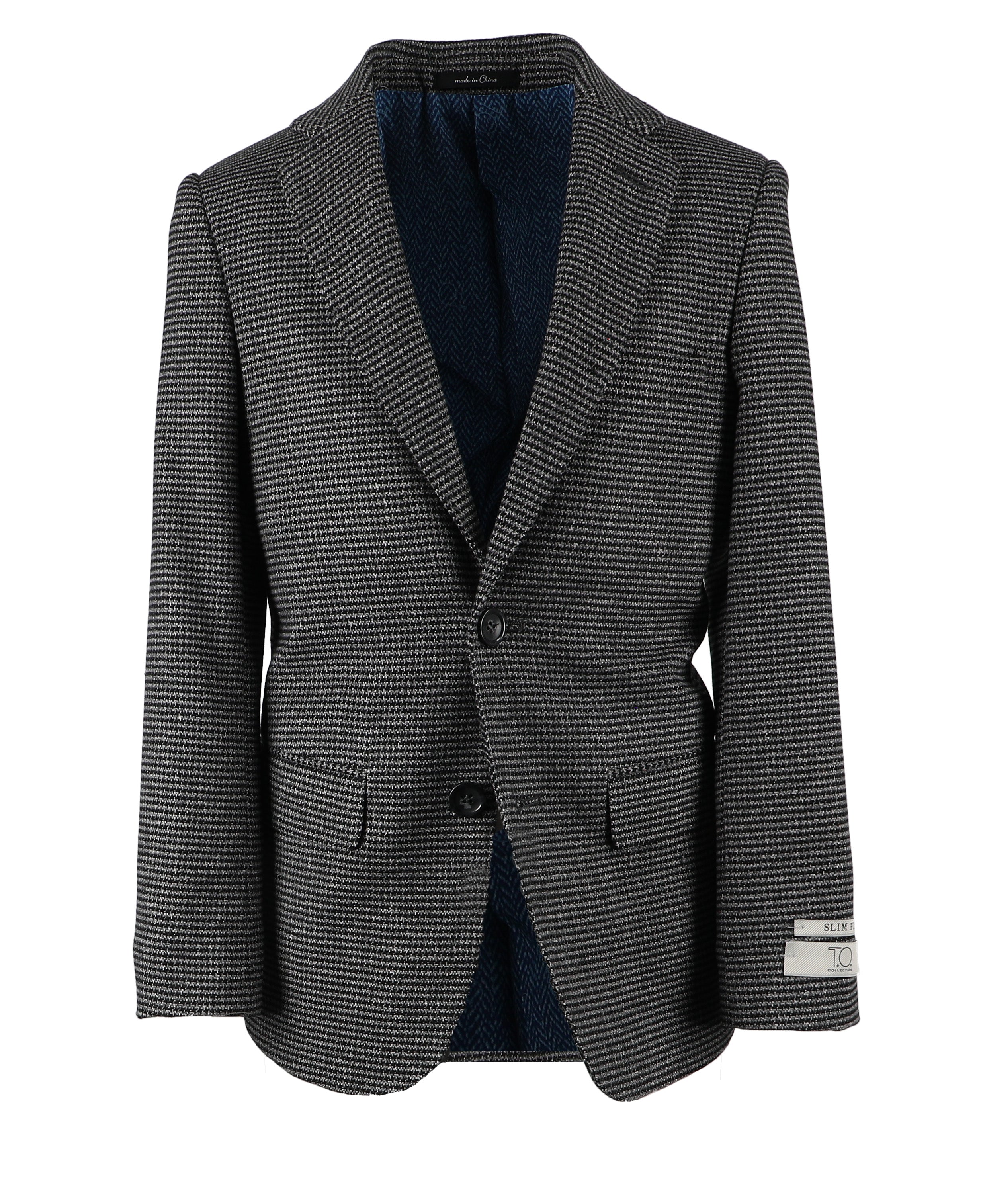 T.O. Boy's Patched Pocket Fashion Blazer - Black Houndstooth